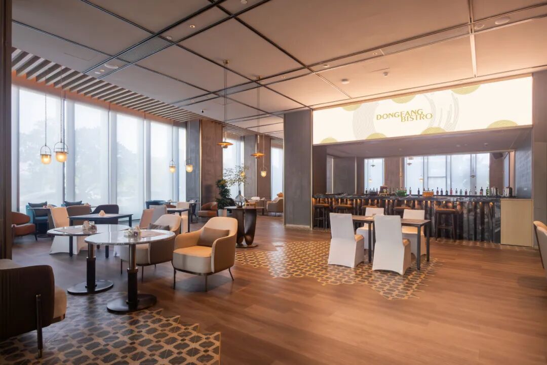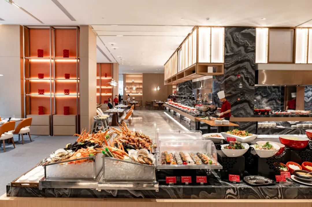 南沙岭南东方酒店配备多样化特色的餐厅,为宾客提供多样化的餐饮选择。中餐厅设计富含古典元素,琉璃窗格传承岭南古典韵味,承载着“食在广州”的饮食文化精髓,精选并呈现广东地区的特色佳肴,将传统粤菜与现代创新菜完美融合。中餐厅拥有12间不同规模的独立包房,无论是亲朋聚会还是商务宴请,都是理想之选。全日餐厅呈现多元化美食盛宴,涵盖自助餐、西餐、简餐,以及欧亚各地风味佳肴。开放式厨房设计让宾客近距离领略烹饪艺术之美,而优雅舒适的用餐环境则完美烘托出与亲朋好友共享美食的愉悦氛围。